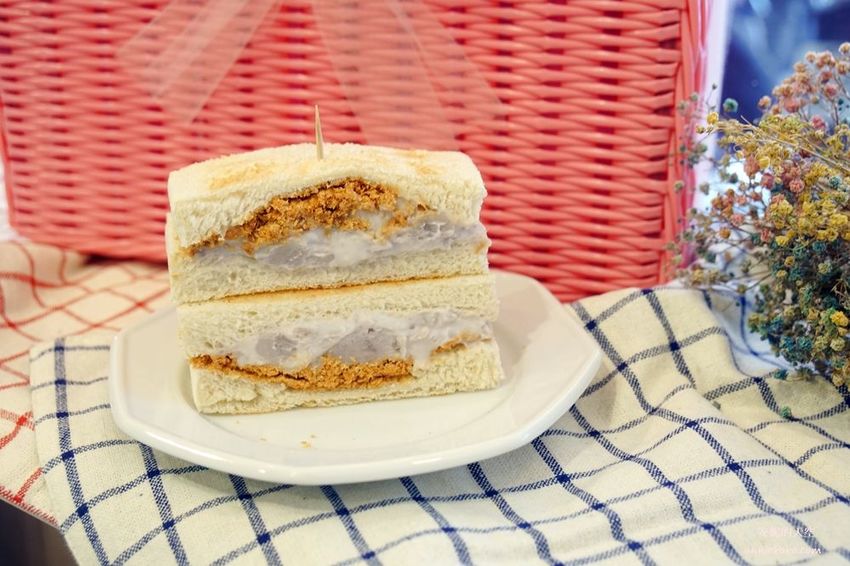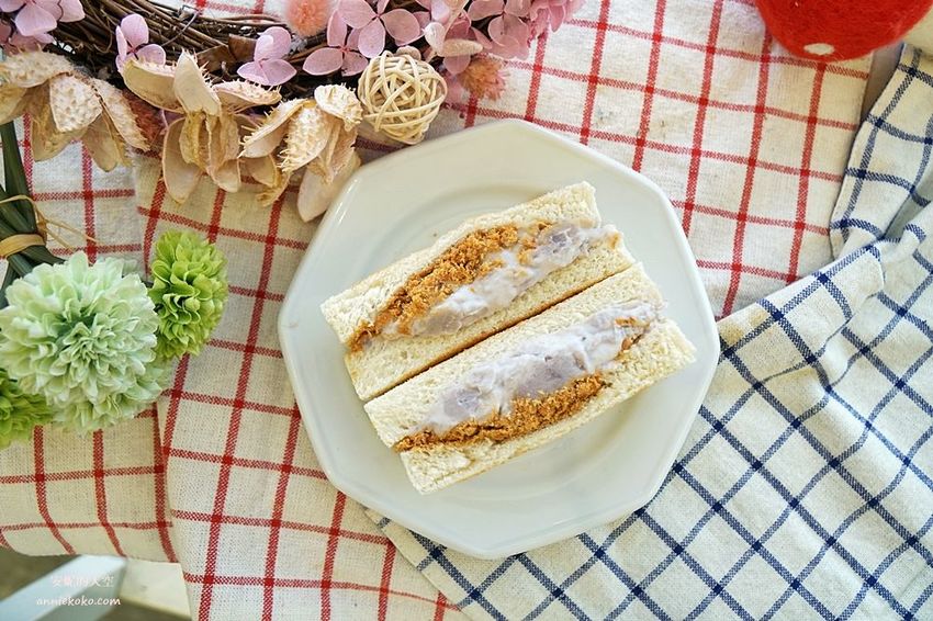 這一份芋泥肉鬆吐司當作下午茶茶點也很可以,而且吐司是延選吉翔吐司,吐司很有厚實度,吃起來很飽嘴呢。