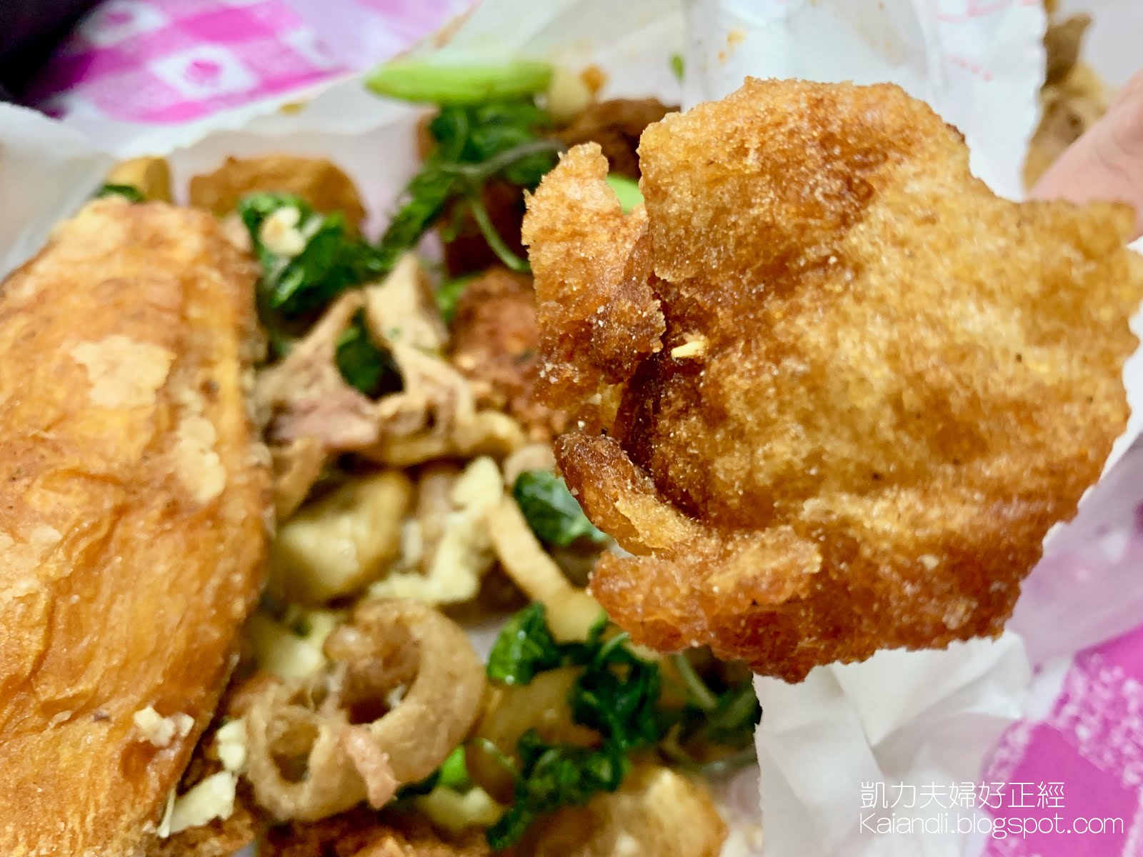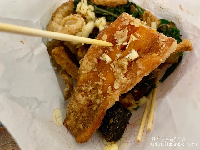 圖10|鹹酥雞的功夫菜—雞皮。有的時候吃到一些雞皮雖然外面脆脆的,但裡面還能吃到皮的感覺,不是這麼好吃。不過老闆的炸功果然一絕,吃起來完全像餅乾的雞皮,超酥脆,完全吃不到皮的感覺,不跟外國人說這是皮,他應該完全吃不出來。