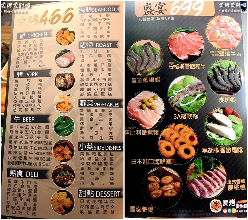 愛烤愛對囉有三種價位,愛烤466元、愛對囉588元、盛宴699元