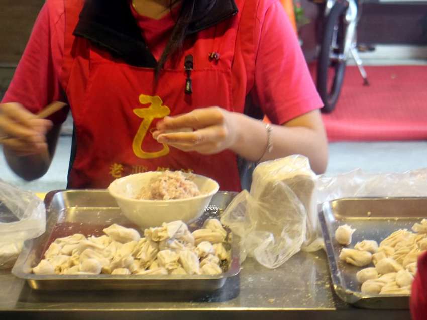 老曹餛飩目前已由第二代接手,除了有了新的商標,更不習成本地改用豬界的勞斯萊斯-<噶瑪蘭黑豬肉>做內餡,現場工作人員雙手幾乎沒有停過地包著一顆顆的餛飩。噶瑪蘭黑豬肉>