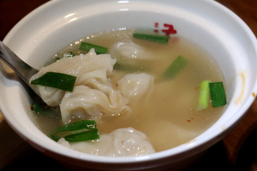 友人直接點一套的是單純的餛飩湯,一碗內會有十顆的餛飩。湯頭有韭菜段及油蔥。