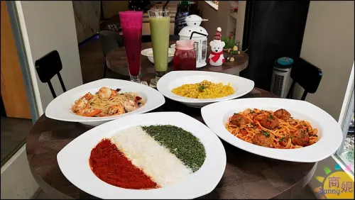 採用新鮮番茄製作的番茄醬汁,搭配Q彈的義大利麵條,吃起來沒有化學香精的味道,裡頭還有些許的培根點綴,讓層次更加豐富