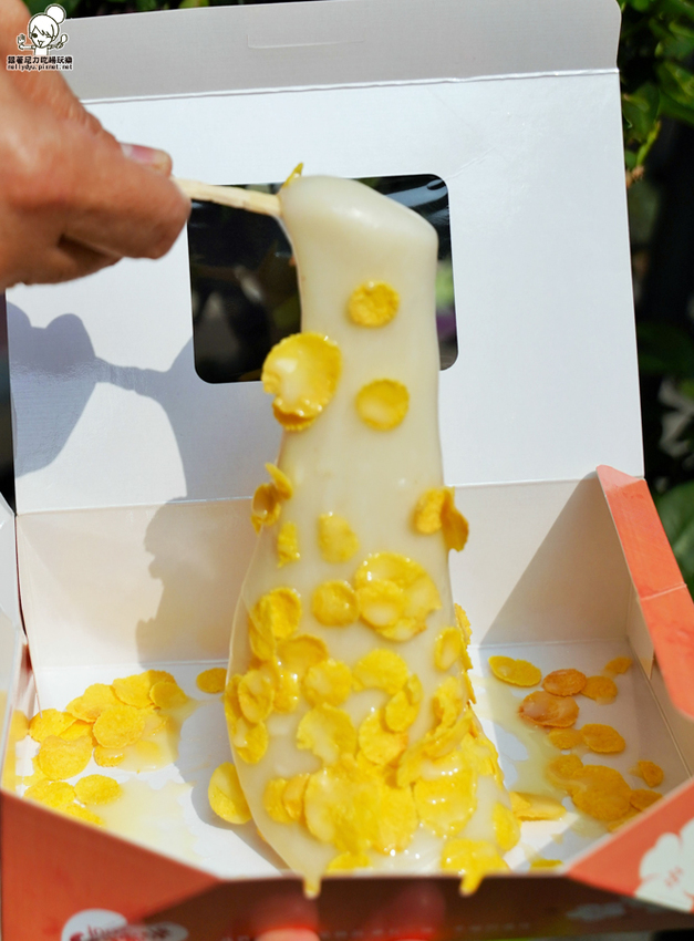 淋上邪惡煉乳,乳香甜味讓麻糬更唰嘴