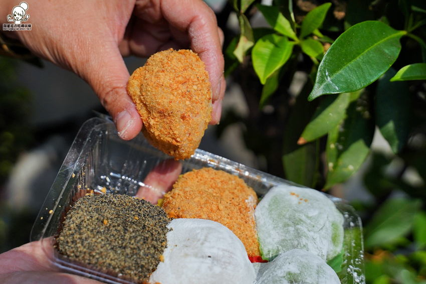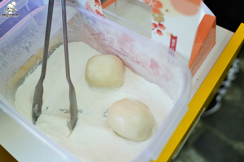 麻糬非常的軟Q,外表也裹上了自家炒的糯米粉,防止麻糬沾黏