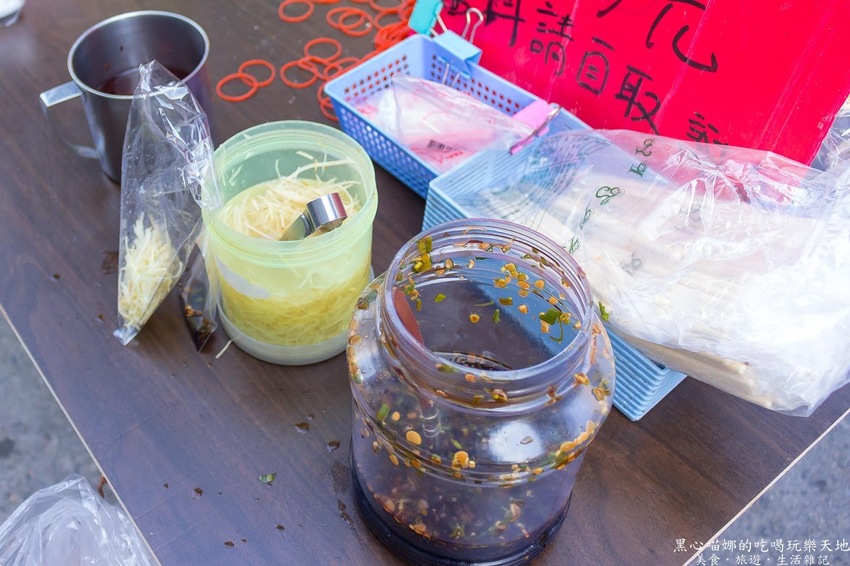 醬料有蔥醬油、薑絲和醬油膏三種,可以直接淋到食盒裡、或者另外包。