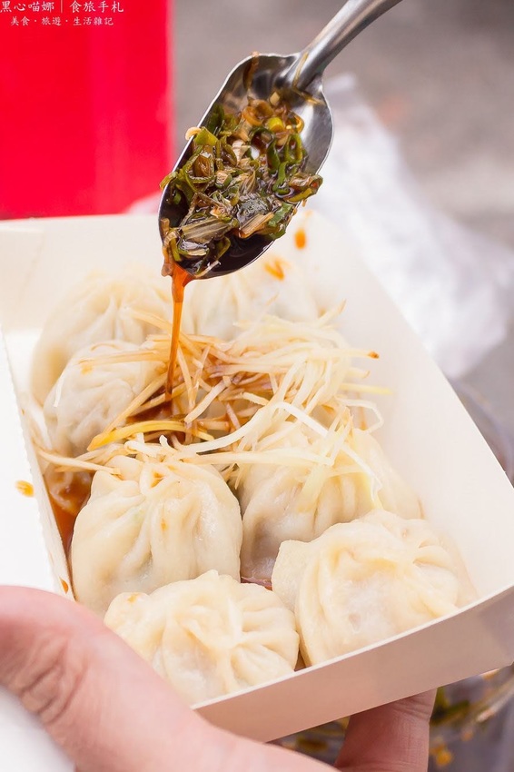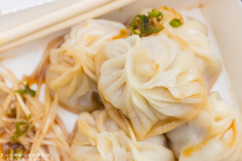 薄外皮略帶著彈性與嚼勁,咬下後鮮甜滾燙肉汁奔流入口,豬肉餡的肥瘦比例我非常喜歡,吃起來潤口不油膩再加上青蔥的蔥香,然後配上嫩薑絲與蔥醬油,甜、鹹、香、潤、鮮,多種味道在口中結合又散開,滋味可豐富啦!