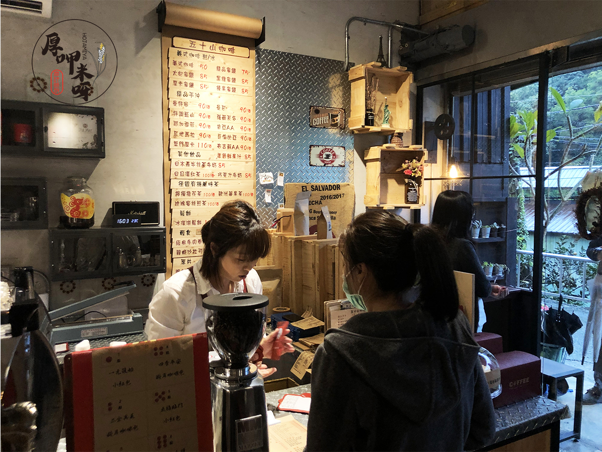 店家座落在汐止山邊的平房之中,沒有其他店家的這裡,即使五十山咖啡在路旁放上一個小立牌,不是特地來尋找咖啡香的人,應該也不太會留意到。