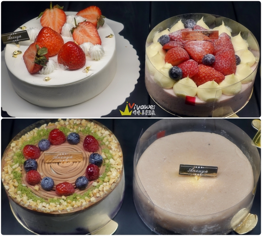 ▲(左上)疼愛-覆盆子蛋糕1200元、(右上)芋到泥-芋泥戚風蛋糕680元、(左下)黑森林-巧克力戚風蛋糕880元、(右下)翡翠檸檬蛋糕1200元。