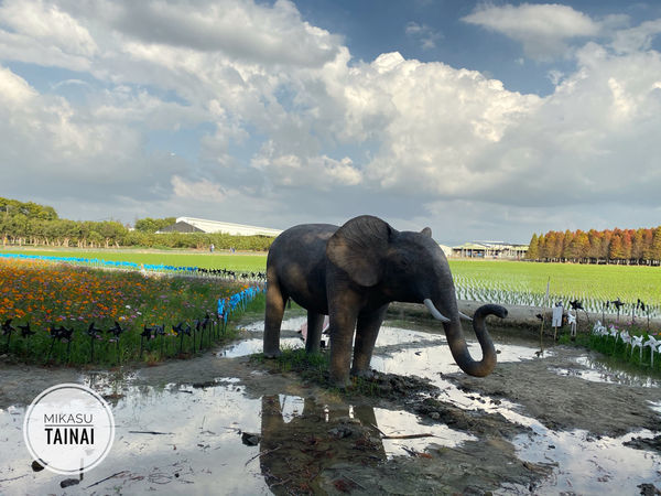 旁邊的大象在花海中,剛好有水看起來滿美的~不知道是不是故意放水的,但是為什麼這裡要有大象¯\_(ツ)_/¯
