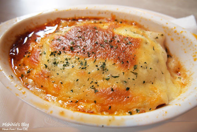 肉醬醬汁以牛肉醬汁及番茄紅醬調味 但個人覺得牛肉及整體份量偏少吃起來不過癮