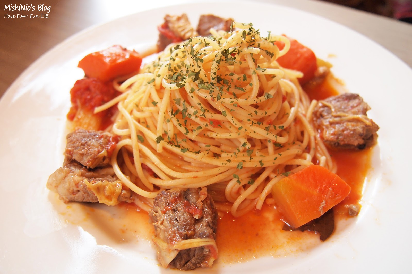 月桂牛肉義大利麵 燉牛肉及大塊的紅蘿蔔非常入味軟嫩 不太需要咀嚼
