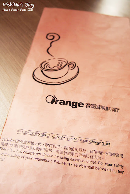 Orange看電車咖啡館每個人的低消是100元(若要使用插頭要收取30元電費)