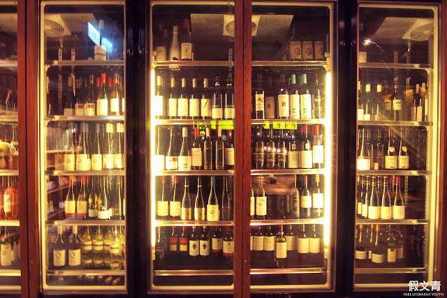 上二樓前的酒牆冰櫃,有水果啤酒、白酒、紅酒、黑麥啤酒等等。