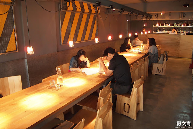 店內裝潢使用了許多冷色調的元素裝飾,鐵板、水泥、鐵網、麻袋縫製的沙發等等,打造出一種非常獨特的工業美感。