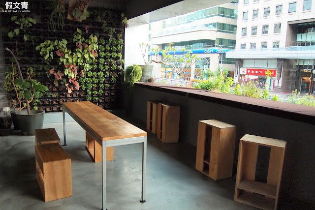 二樓露天戶外的部份,種植了兩面植生牆,開放式的座位,非常特別,可以直接眺望正在趕工的捷運信義線工地,但也因為沒有窗,所以會直接吸到廢氣,喜不喜歡就見仁見智啦。