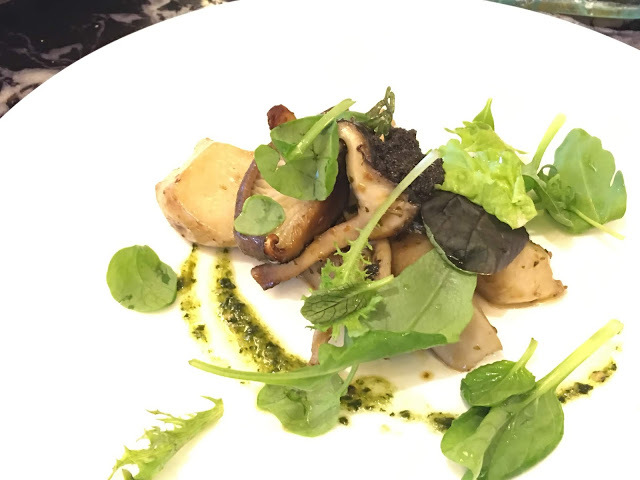 野菇沙拉,也有松露醬與青醬的醬汁來襯托菇類的豐富感。喜歡吃香菇的人一定會很喜歡!
