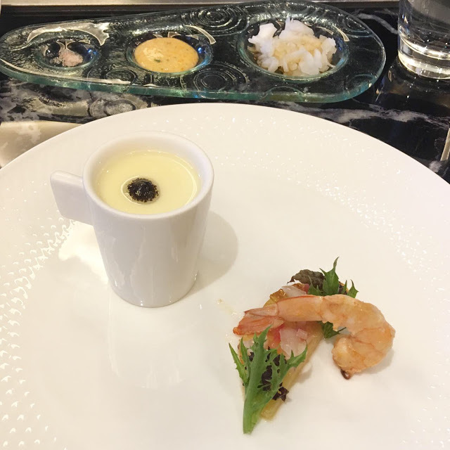 ■熱前菜- 松露蒸蛋與蝦子,松露的香氣我超愛的,第一道菜我就超開心!