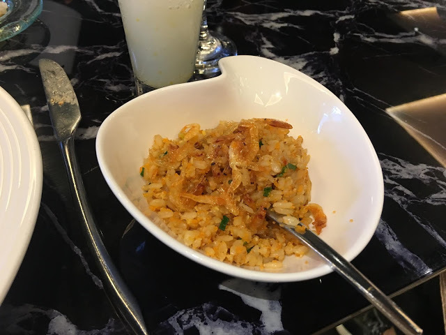 ■櫻花蝦炒飯- 在最後的時候再來一個櫻花蝦炒飯,默默的跟日本的鐵板燒蒜頭炒飯,我們台灣的真的料好多唷!(誤)