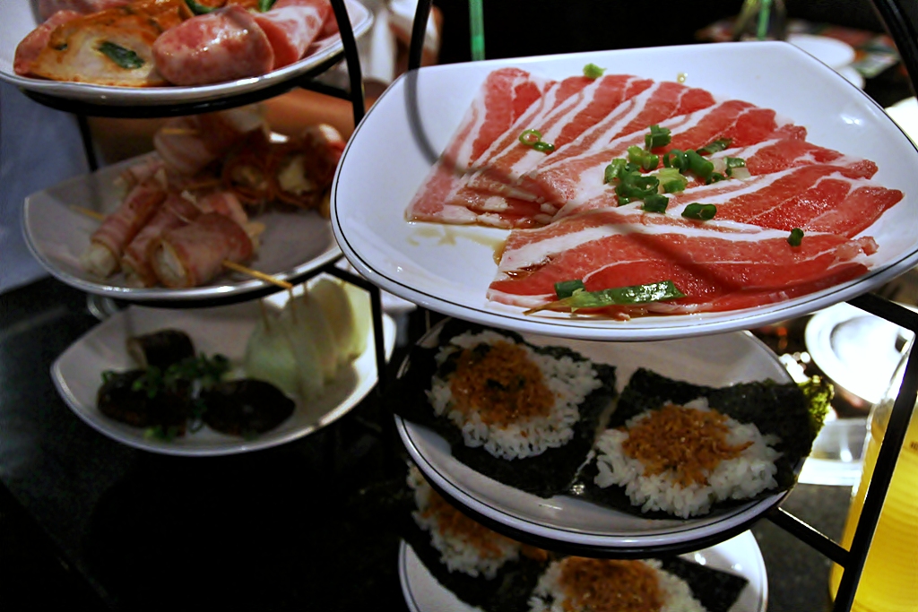 英式點心籃 有個海苔飯包著牛肉一起享用 味道很棒