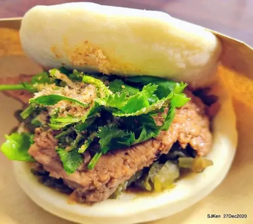 【牛肉餡餅】:吃這一道要非常小心,一咬下去湯汁整個噴發出來,牛肉的香氣瞬間充滿口中,外面的面皮非常的香,煎的酥酥脆脆的,不過裡面的調味有點偏鹹,讓牛肉的鮮甜都被蓋了過去,有點可惜