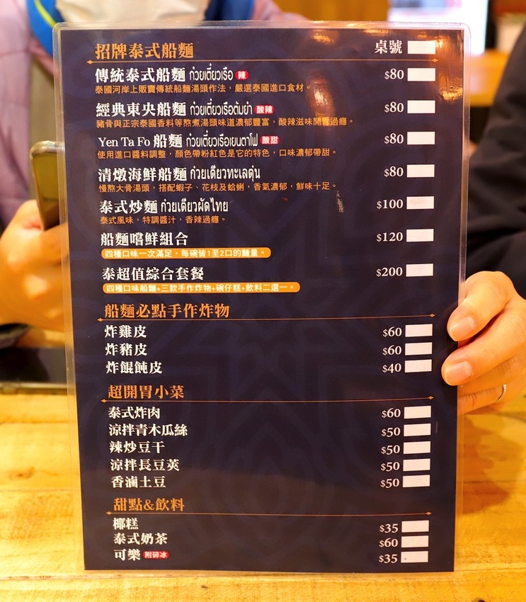 我們點的《泰超值綜合套餐》,含 四種口味船麵 (傳統泰式船麵(辣)、經典東央船麵(酸辣)、Yen Ta Fo船麵(酸甜)、清燉海鮮船麵) ++三款手作炸物+碗仔糕+飲料二選一)。