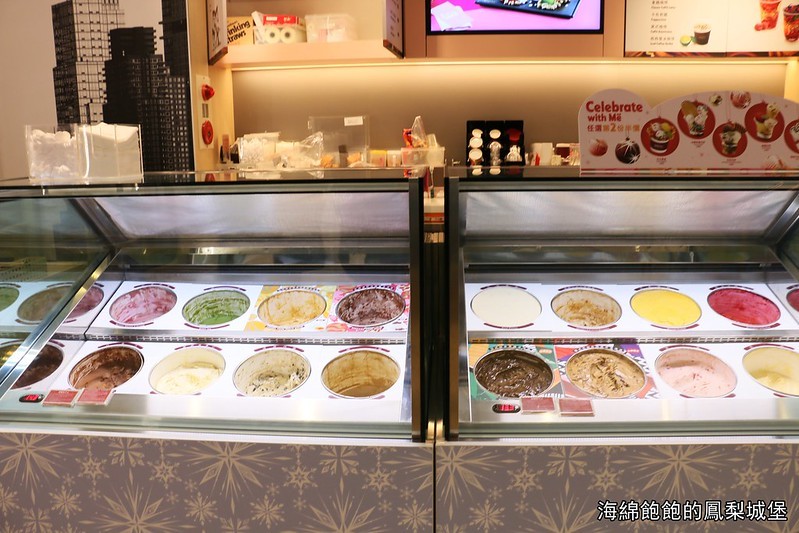 冰淇淋口味是草莓、覆盆莓、芒果、巧克力、香草、咖啡