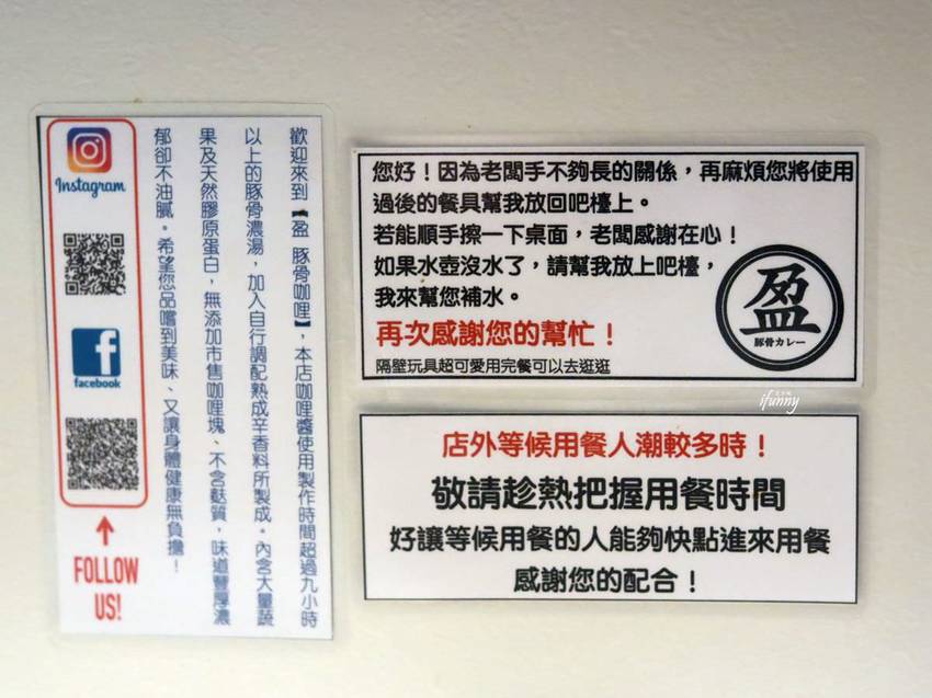 盈 豚骨カレー咖哩飯專門由於自開幕以來,就受到許多關注,但因為座位數不多,因此來到此總免不了要排隊,年輕的老闆還在臉書上打趣說,終於有錢買椅子了XDD 所以到的時候若要等候,可以坐在椅子上等,不用像我們之前等到腳酸。