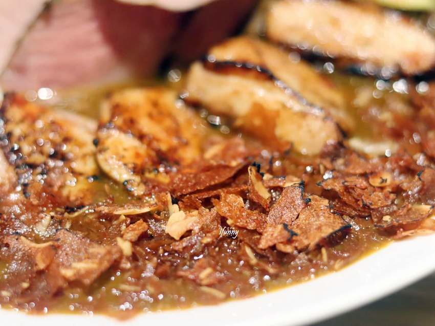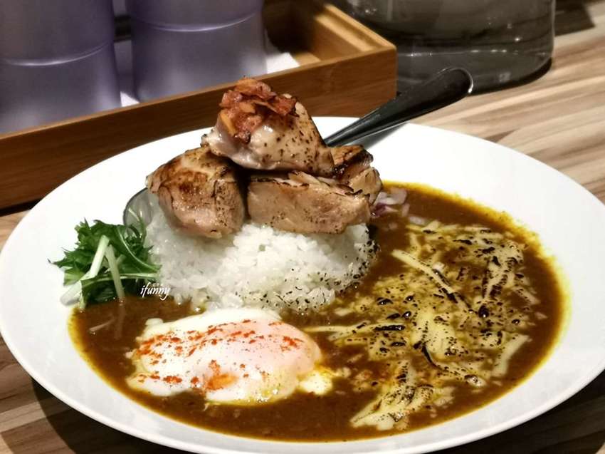 首訪盈 豚骨カレー咖哩飯專門時,對於舒肥過且事先醃漬入味的雞肉,特別有印象!上桌前才炙燒的雞皮不僅香氣十足,鮮嫩的口感相當討喜。