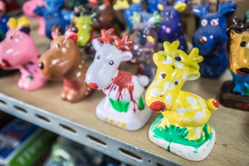 除了動態的活動外,山腳鹿場-水鹿之家還有靜態DIY彩繪的活動,散客同樣也可以用一張門票來換,將可愛小鹿存錢筒塗上顏色就可以囉