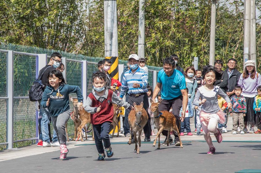 餵完小鹿,接著就要進行重頭戲之一,小鹿賽跑!工作人員會先把小鹿帶到起跑點,小鹿真的跟小朋友一樣超愛玩的,不受控呀,哈哈哈!