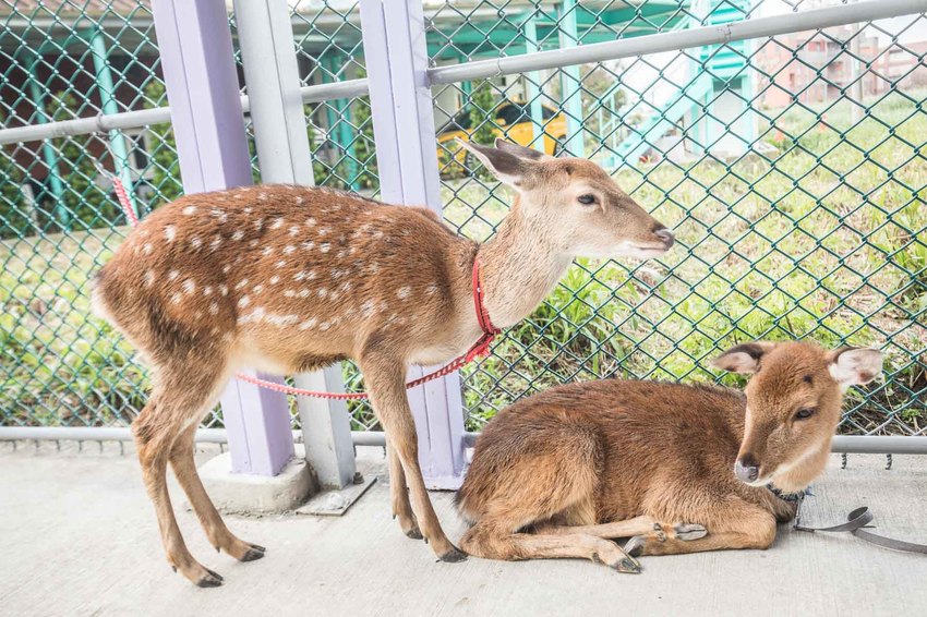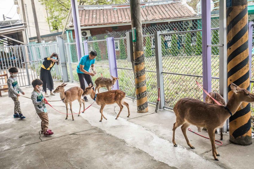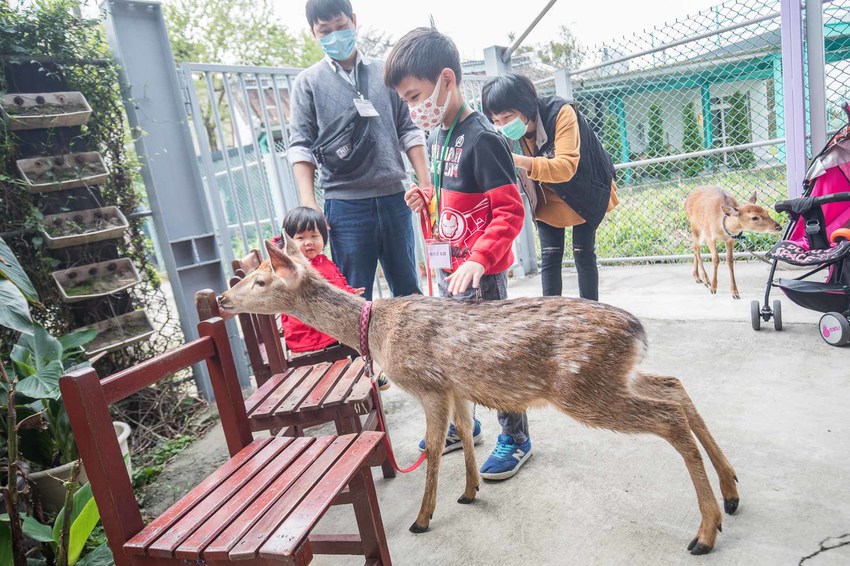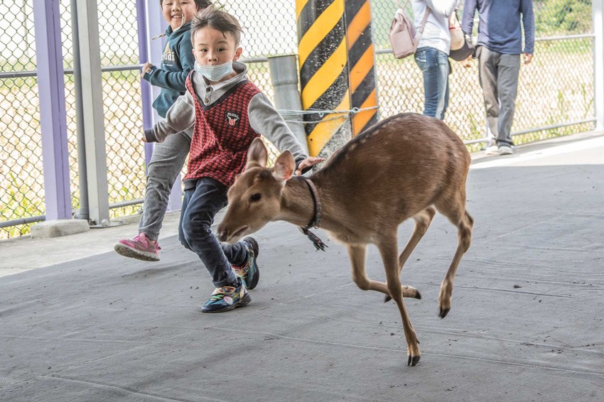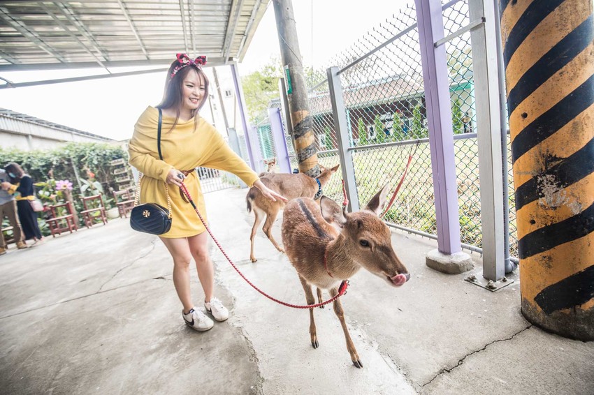 牽小鹿散步蠻有趣的,除了有時候小鹿爆走跑起來…因為小鹿沒有上面的牙齒,所以不用擔心被咬,可以安心地跟小鹿做近距離接觸吧,超可愛的!