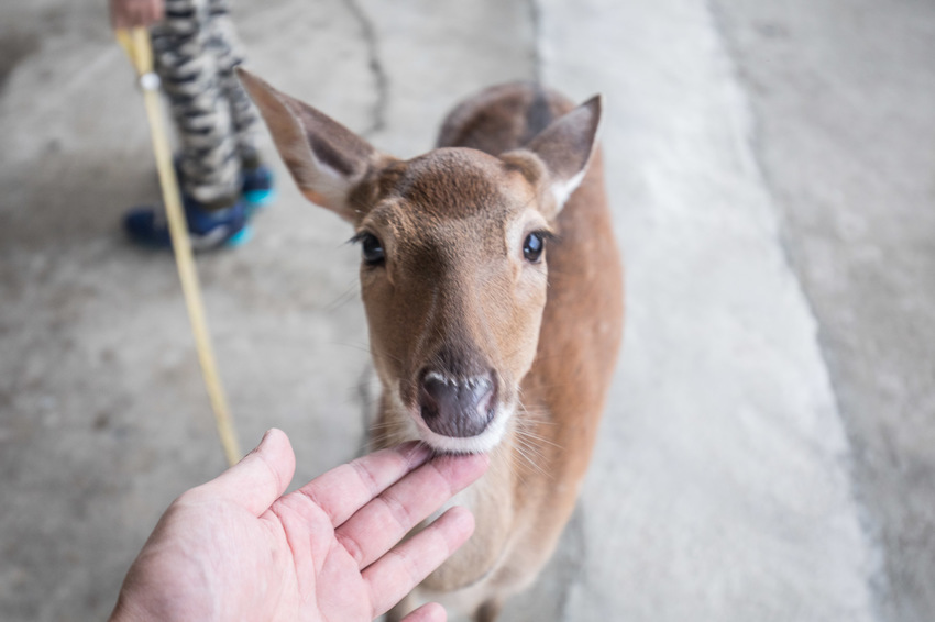 基本上這裡的鹿鹿咬人不會痛,就算餵的時候整根手指被小鹿嗑也不會痛,但會熱熱濕濕…