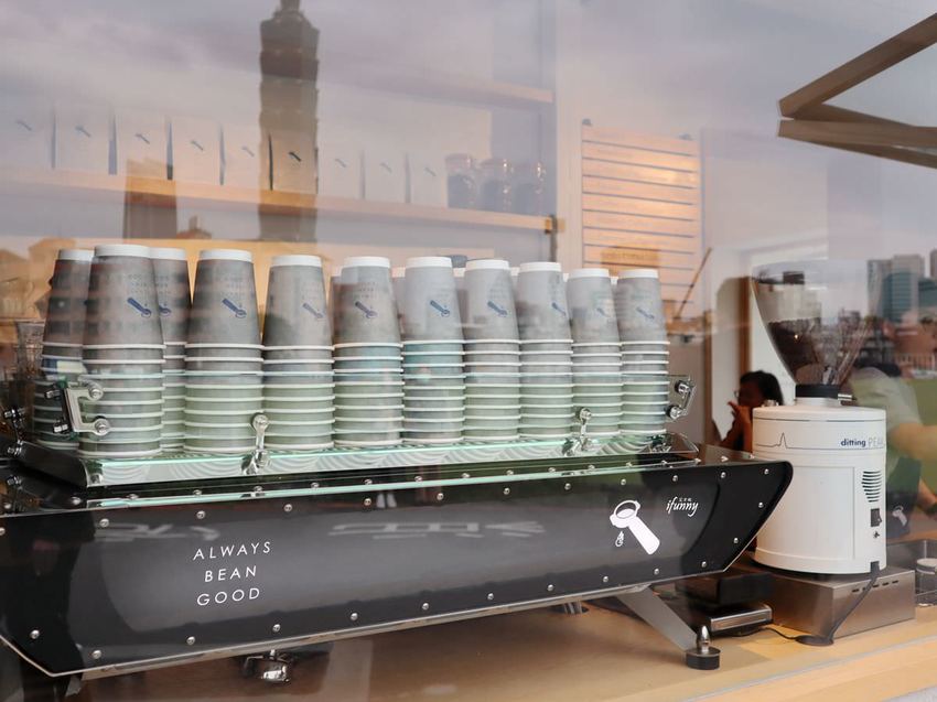 在ABG Coffee的玻璃窗上就能見到台北101的身影,所以在此排隊或喝咖啡的同時,也能享有不錯的風景可看。
