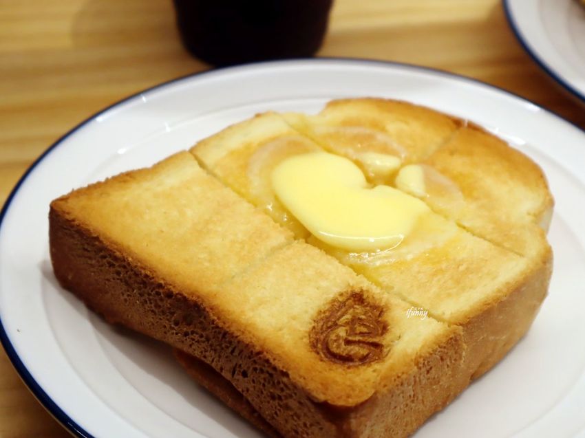 厚吐司的右下角是店名ABG的烙印,烤好後放上了奶油,遇熱融化的奶油, 為酥香的吐司增添了香氣。鹹香的滋味與酥脆的口感,令人超喜愛的!由於最終是吃不下,請求打包外帶的盒子很有質感,可愛的服務人員還提醒回家加熱後,仍可維持剛出爐的美味。