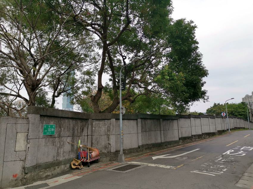 走著走著就可以發現左側圍牆邊的台北101及南山大樓清晰可見!原來這裡也是看跨年煙火的好處所。