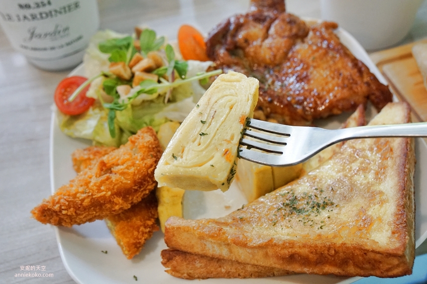 壹三找餐的早午餐拼盤系列也別有巧思,應該說老闆真的很用心,這樣一盤不到200元的早午餐餐盤竟然有一整隻完整的去骨雞腿肉,現煎的功夫菜玉子燒,還有日式咖哩可樂餅,法式風味的法式吐司與生菜沙拉,一整盤豐富餐點cp值超級高,而且光是玉子燒本人出現就讓我頗為感動。