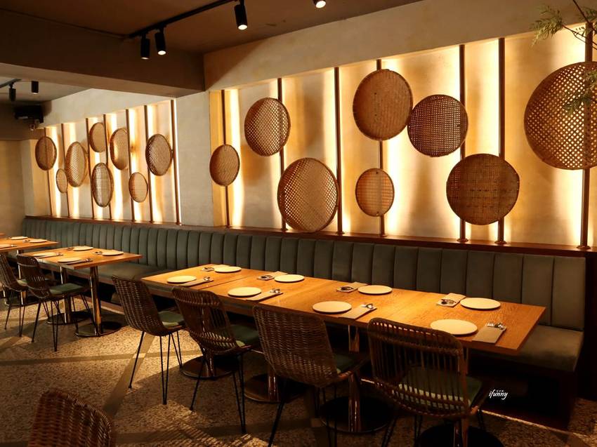 baan taipei的座位區則利用大量的木頭及淡淡的綠色,帶出南洋的閒適風格。