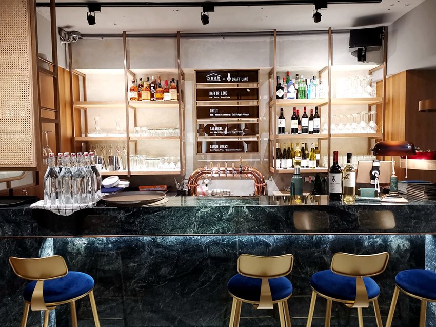 走進baan taipei的店內,先被這調酒的吧檯所吸引。