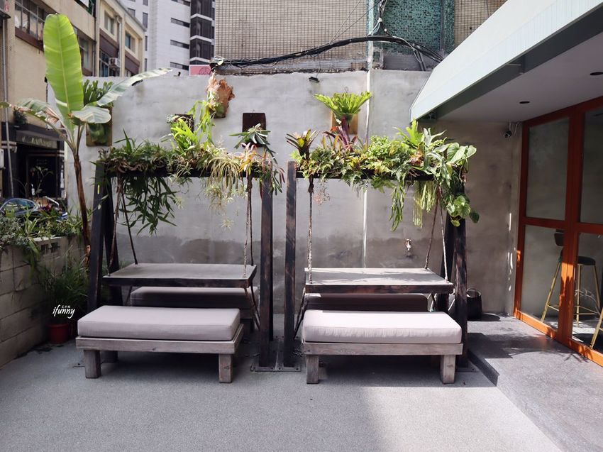尤其是庭院中這兩座南洋風情的戶外座椅,配合當天的冬陽,顯得特別地悠閒。