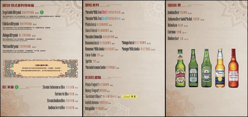 《主廚帽印度餐廳》有低消150元的限制,100cm以下的小朋友無低消限制。店內料理有葷食,也有提供素食料理,都有特別標示~