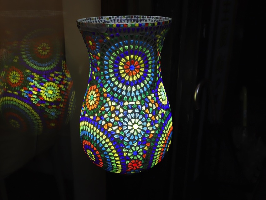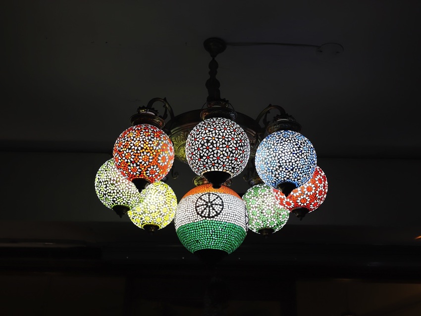 如:騎樓天花板的七彩燈罩,顏色繽紛,圖案典雅