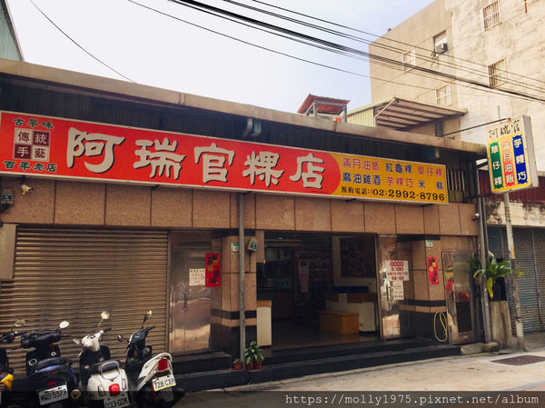 頭前庄二號出口往新莊老街方向前往,往香之味脆皮烤鴨的巷內走。不遠處就可以看到阿瑞官粿店的招牌