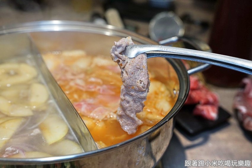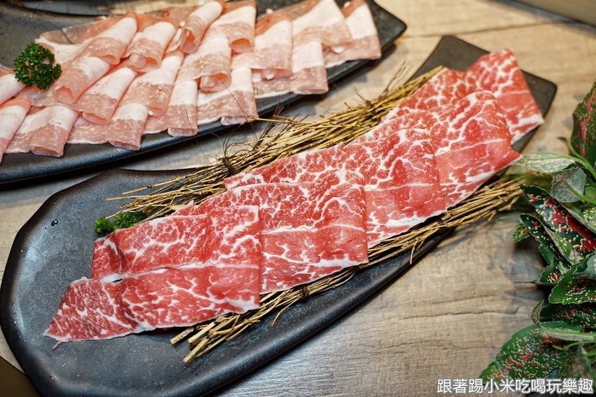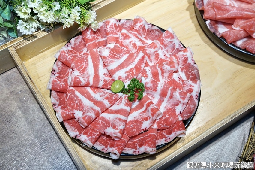 以為結束了嗎?還加碼4盤肉,小米嚴重懷疑老闆有賺錢嗎,像這盤是澳洲和牛耶,油花相當的漂亮,軟嫩不帶嚼勁的肉甜味,超正點,建議涮泡菜或是汕頭湯頭。