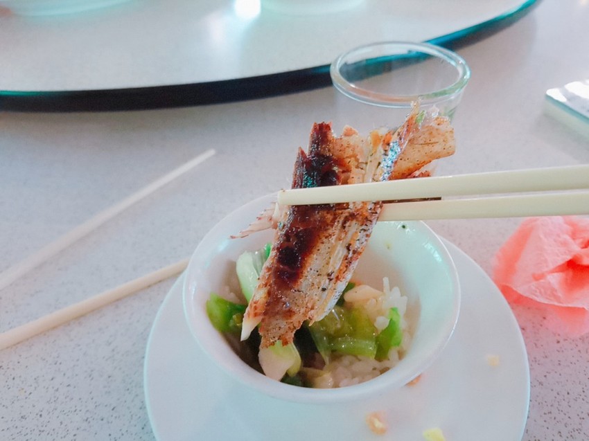 跟脆皮雞一同上桌的還有烤秋刀魚,一份160元有兩尾。