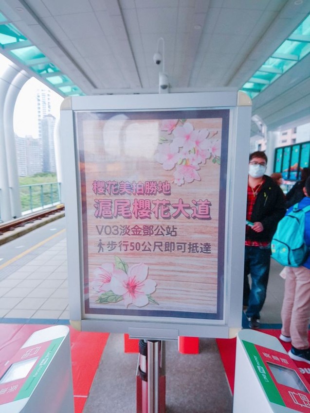 下車後,搭電梯到三樓,往左邊的步道開始行走,便是滬尾櫻花大道了。