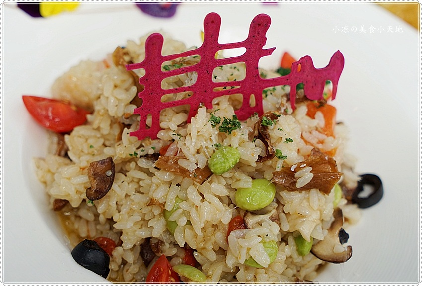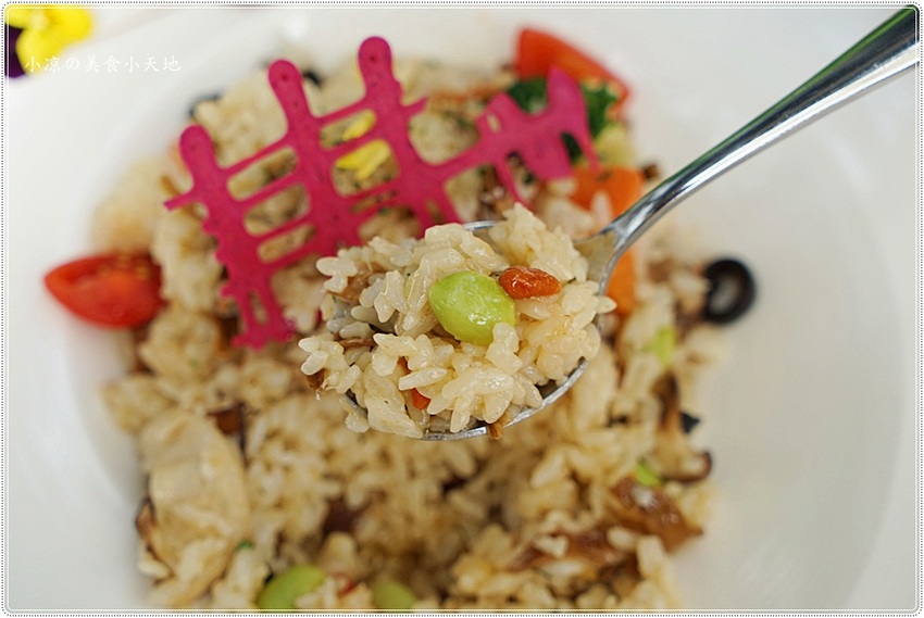 燉飯完全吸收了麻油的香味兒,中西合併的絕妙滋味,加上配料相當豐富以及搭配舞菇的特殊香氣