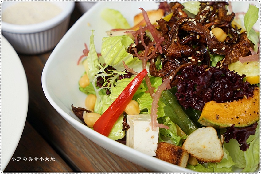 甜椒、鷹嘴豆、葡萄乾,並搭上小涼選的特製腐乳醬,讓沙拉的鮮甜搭上醬汁的鹹香