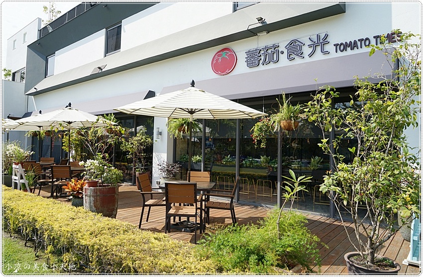 很喜歡蕃茄食光的戶外用餐區,有著植栽綠意盎然的環境以及大片草地..