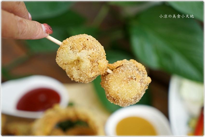 炸蘑菇吃起來香酥又飽水,要小心入嘴的噗滋燙口喔~~