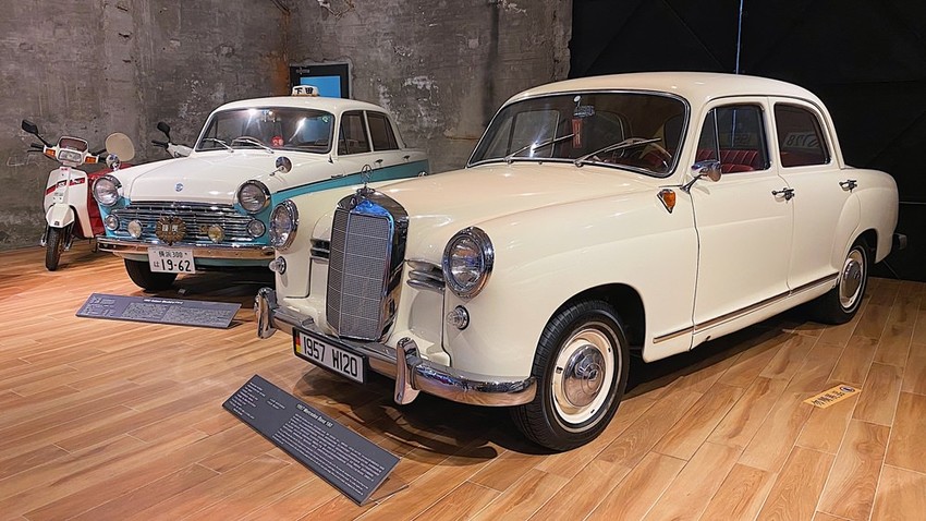 德國這台賓士W120車型計程車,是賓士首度採用級距的車型定位。上網爬了一下,也是Mercedes-Benz在許多跨世代新車發表會都仍會展示的經典車款。另外這台1962年的裕隆青鳥二代也可以說是經典中的經典,看那米白色車身搭上淺藍色的車側線條,真的很漂亮